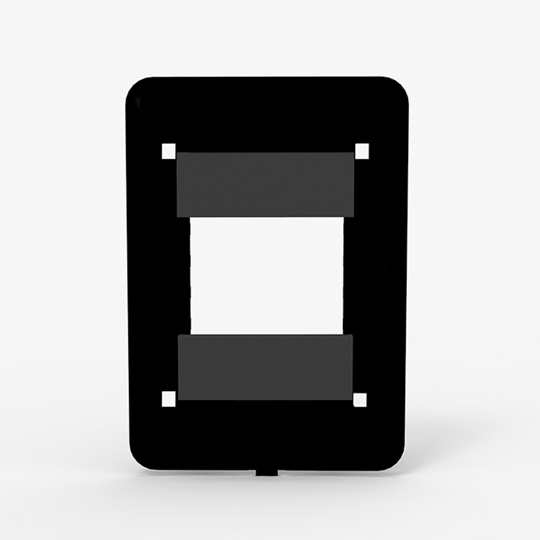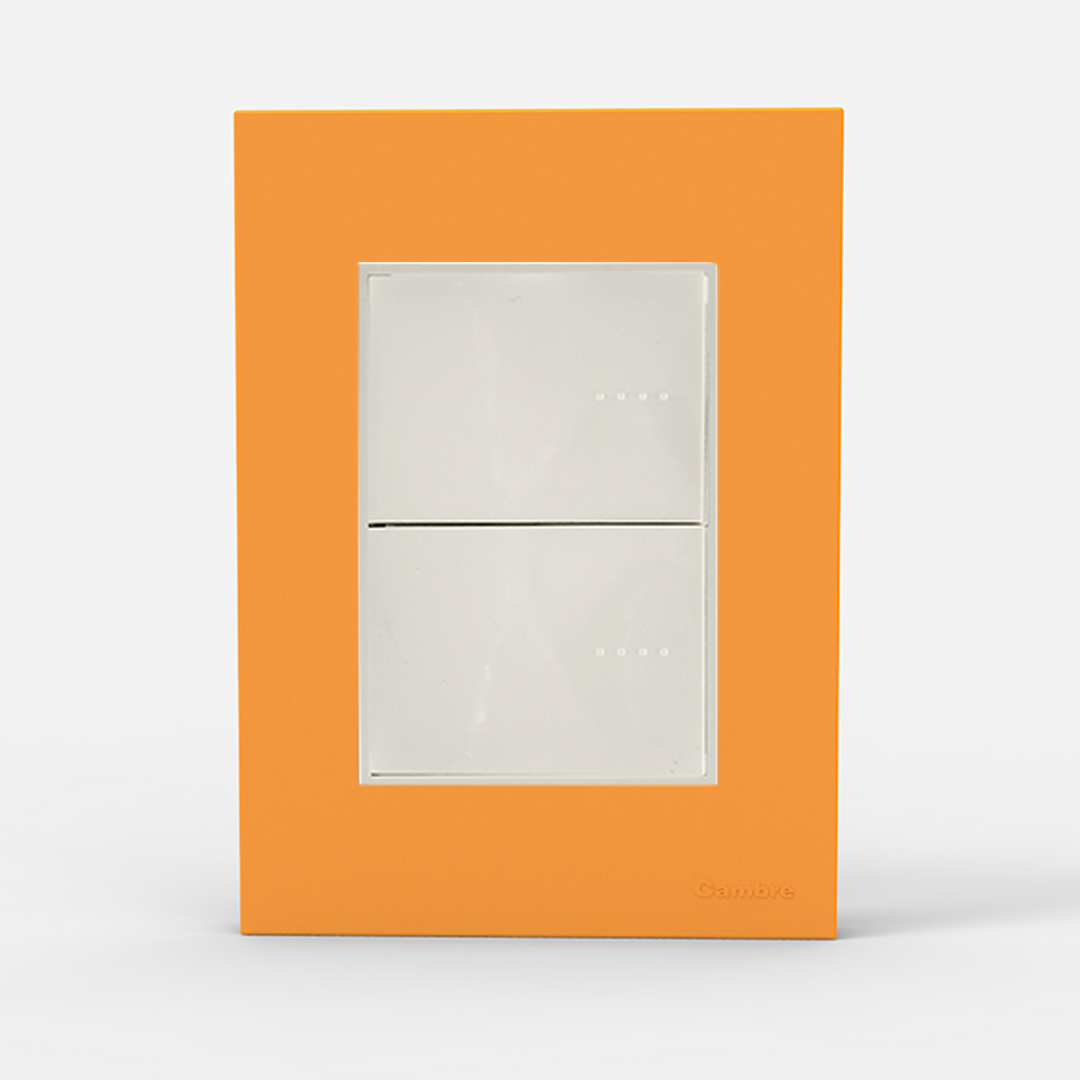 Llave de luz de diseño con formas básicas en su funcionalidad sin que esto impida que se destaque el equilibrio de lo artístico con lo moderno. Se destaca por generar una distancia entre la pared y la tapa que hace que esta se perciba como si flotara, conocido como Visual float.