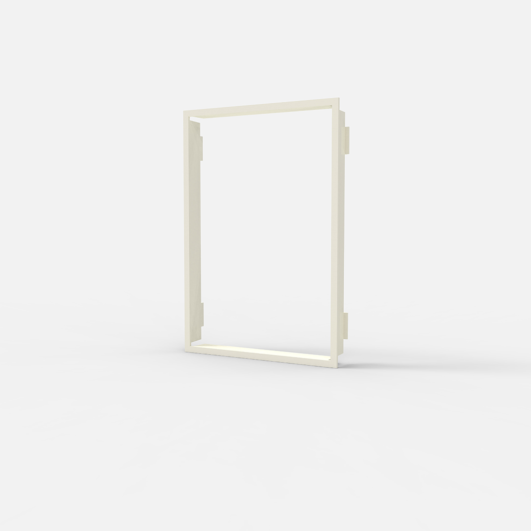 Llave de luz de diseño con formas básicas en su funcionalidad sin que esto impida que se destaque el equilibrio de lo artístico con lo moderno. Se destaca por generar una distancia entre la pared y la tapa que hace que esta se perciba como si flotara, conocido como Visual float.