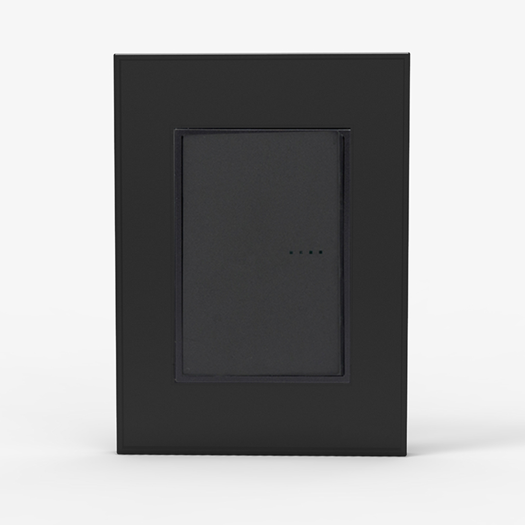 Llave de luz de diseño con formas básicas en su funcionalidad sin que esto impida que se destaque el equilibrio de lo artístico con lo moderno. Se destaca por generar una distancia entre la pared y la tapa que hace que esta se perciba como si flotara, conocido como Visual float. Los materiales puros pueden sufrir diferencias tanto de tonalidad o de textura entre lotes distintos de fabricación, por tratarse de materiales naturales.