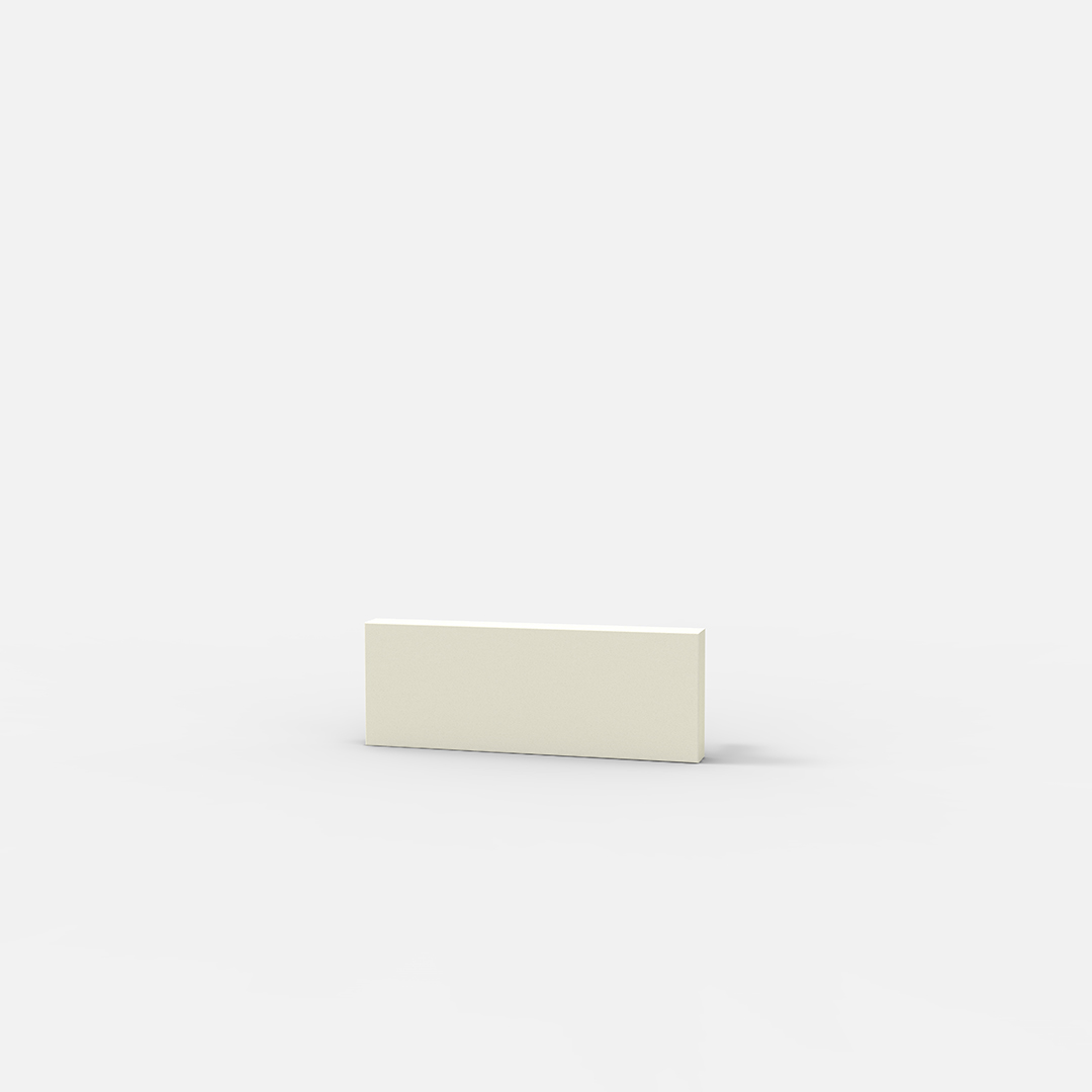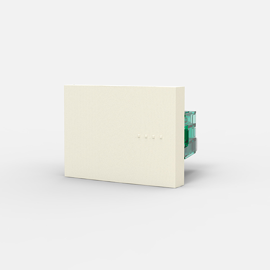 Llave de luz de diseño con formas básicas en su funcionalidad sin que esto impida que se destaque el equilibrio de lo artístico con lo moderno. Se destaca por generar una distancia entre la pared y la tapa que hace que esta se perciba como si flotara, conocido como Visual float. Los materiales puros pueden sufrir diferencias tanto de tonalidad o de textura entre lotes distintos de fabricación, por tratarse de materiales naturales.
