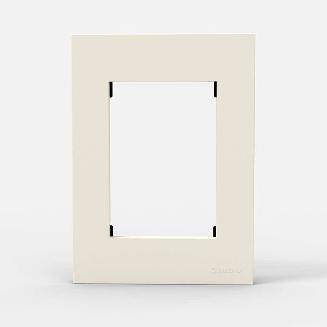 Llave de luz de diseño con formas básicas en su funcionalidad sin que esto impida que se destaque el equilibrio de lo artístico con lo moderno. Se destaca por generar una distancia entre la pared y la tapa que hace que esta se perciba como si flotara, conocido como Visual float.